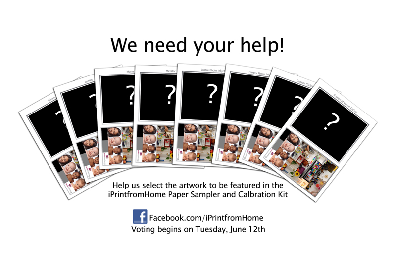 A.Go to Facebook.com/iPrintfromHome. Please "Like" our page. Then review the images in the “2012 iPrintfromHome Paper Sampler and Calibration Kit Images” album and click on “Like” to vote for individual images.