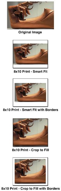 Please note that if the aspect ratio of your digital image is exactly the same as the print size that you order, then both the "Crop to Fill" and "Smart Fit" option will give you the same result: the entire image will fill the entire paper size with no cropping.